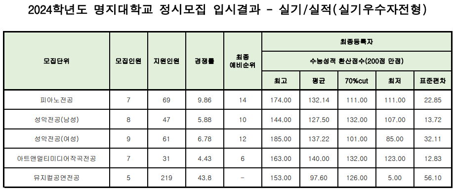3. 2024학년도 명지대학교 정시모집 입시결과 - 실기/실적(실기우수자전형)