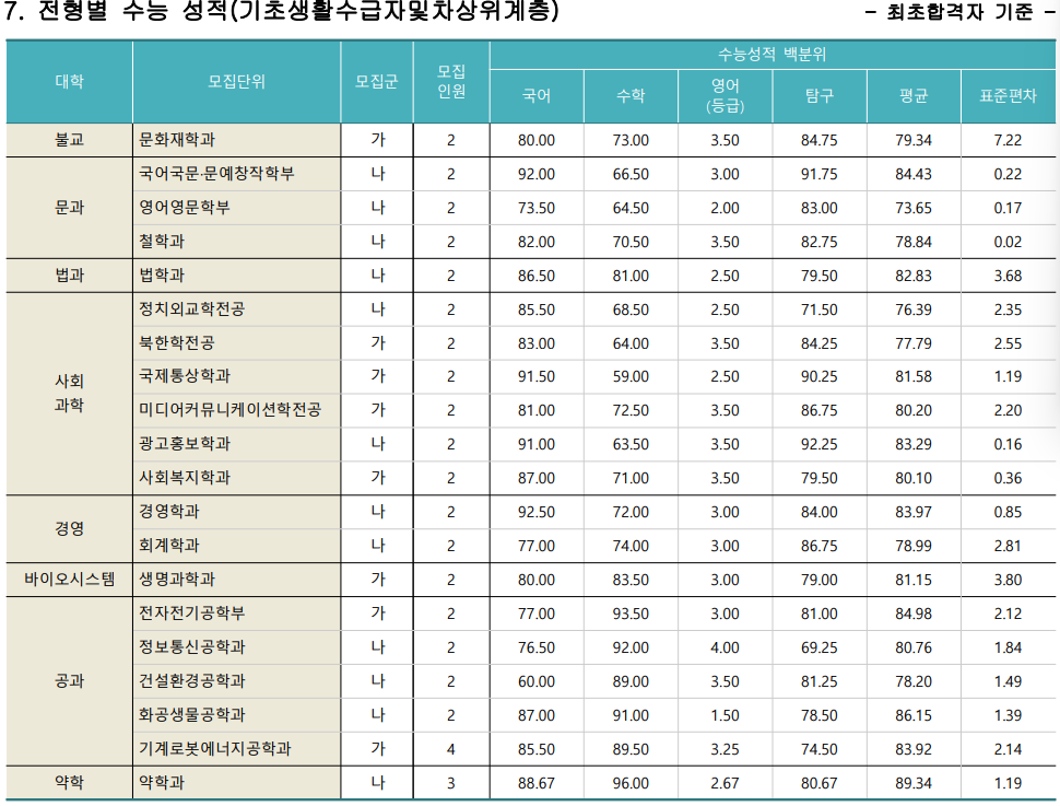 4. 2024학년도 동국대 정시 입시결과 - (기초생활수급자및 차상위계층 전형)