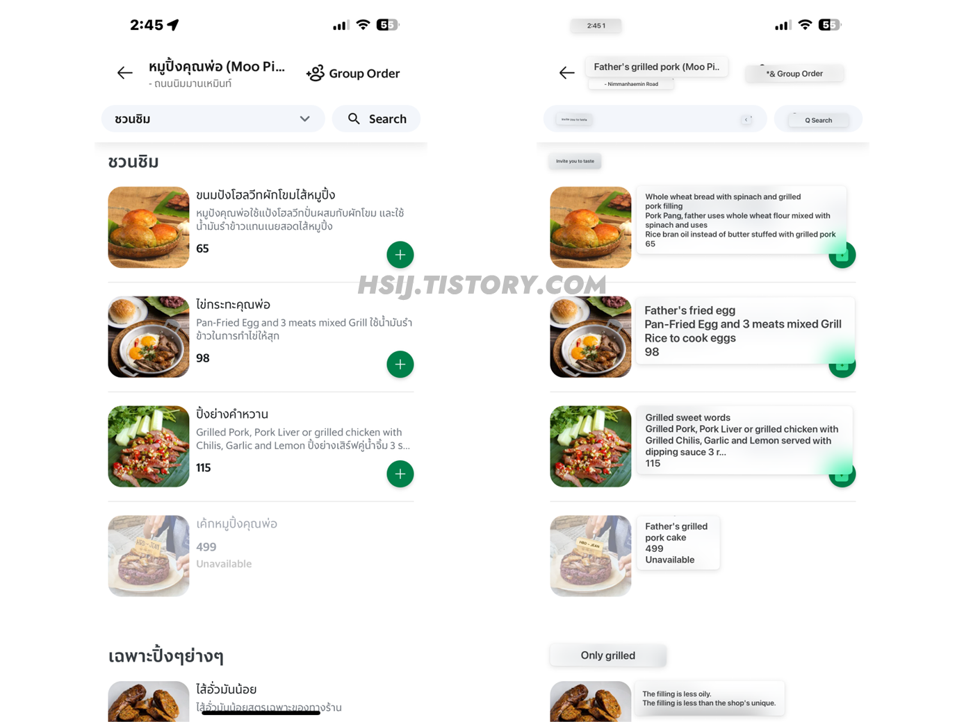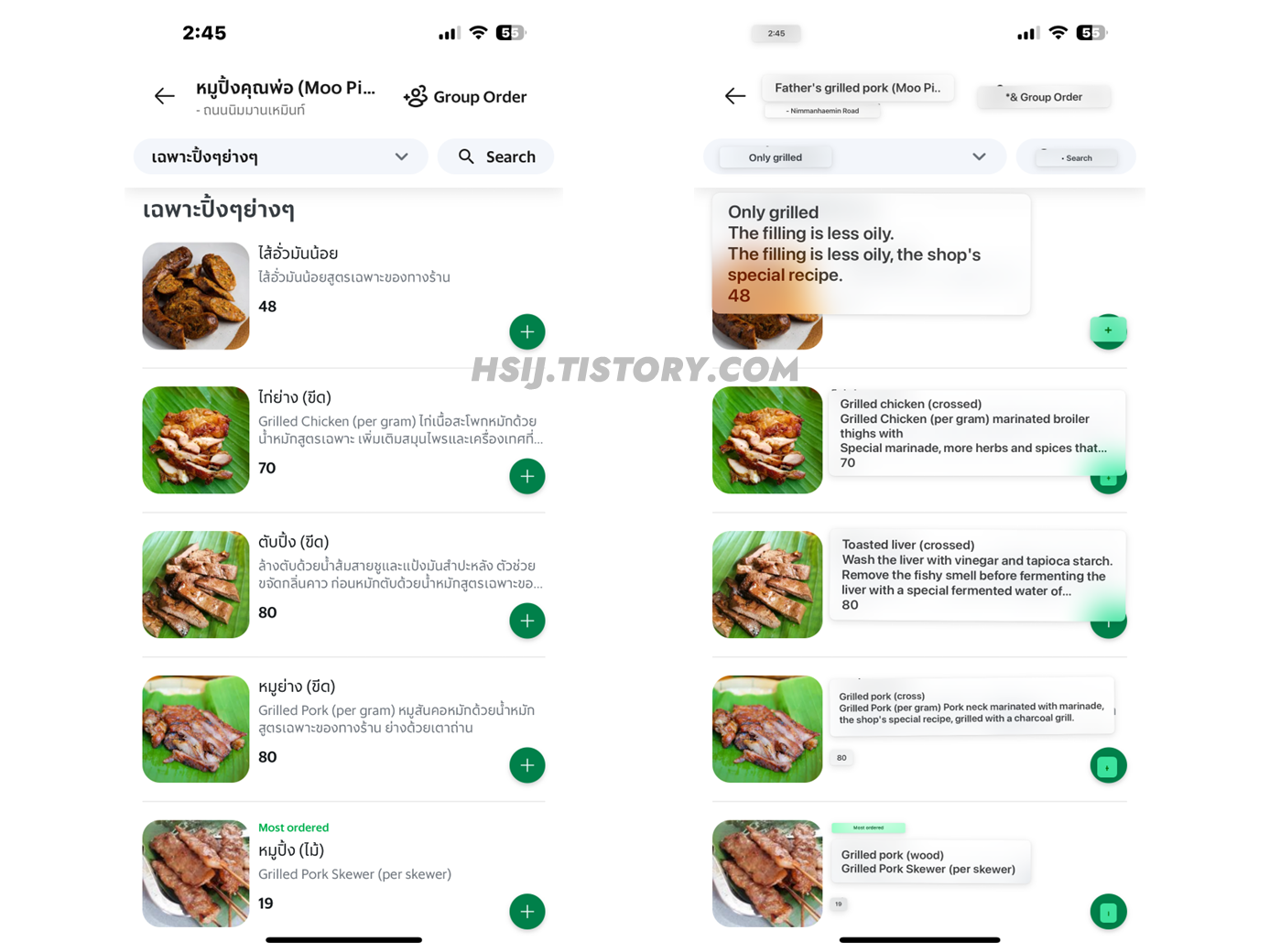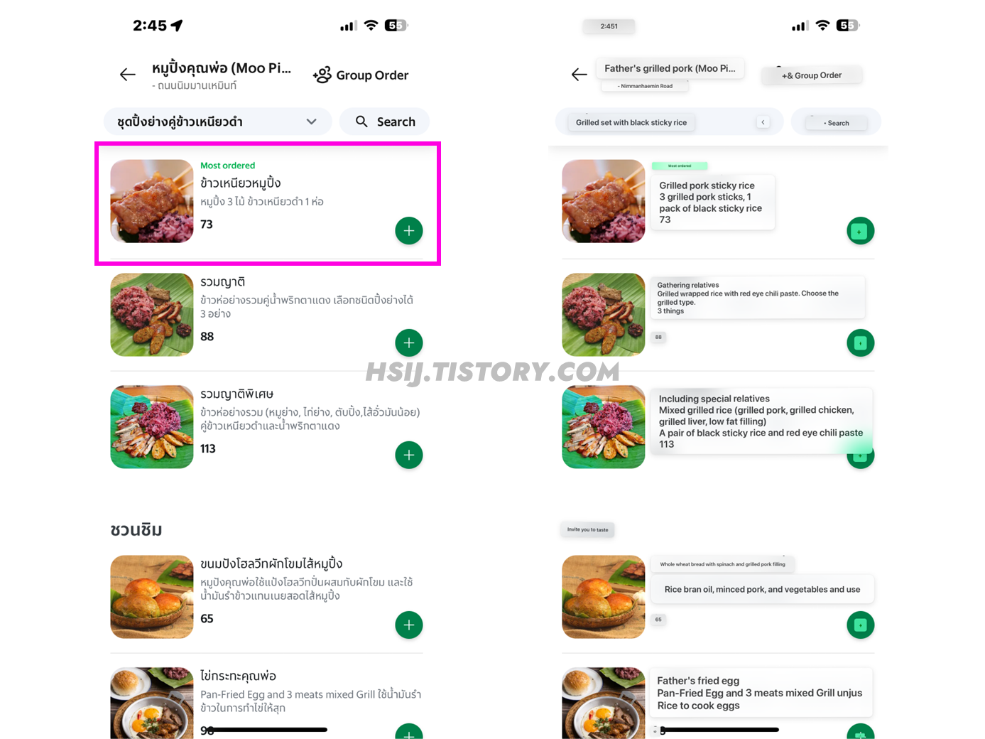 ● 그랩 검색 키워드 : moo ping khun por / หมูปิ้งคุณพ่อ (복붙하세요)
