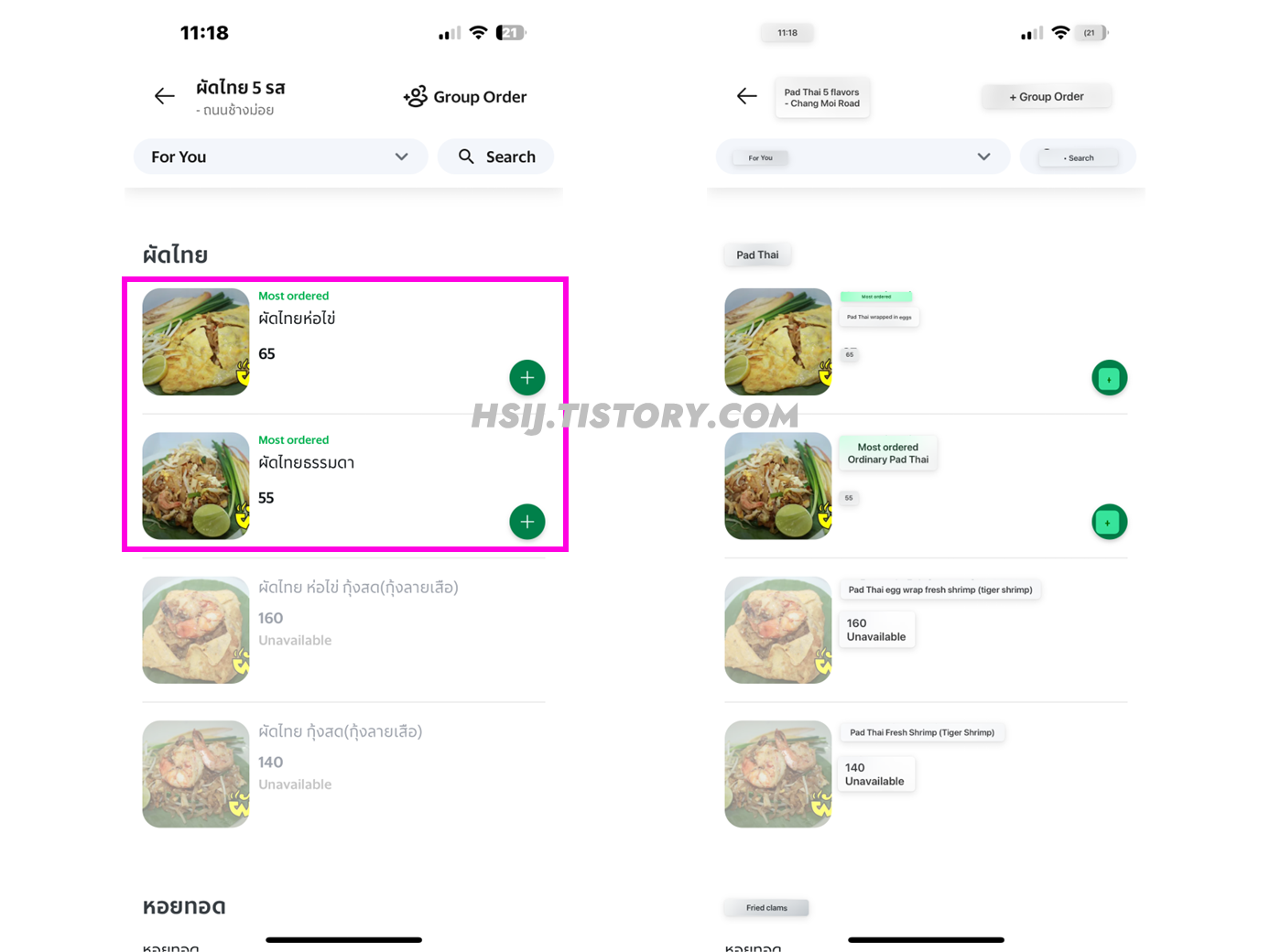 ● 그랩 검색 키워드 : Pad Thai 5 Rod / ผัดไทย 5 รส ท่าแพ(복붙하세요)