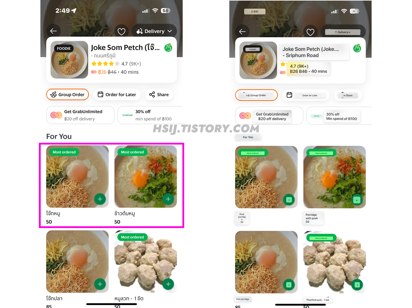 ● 그랩 검색 키워드 : Jok Sompet Restaurant / โจ๊กสมเพชร (복붙하세요)