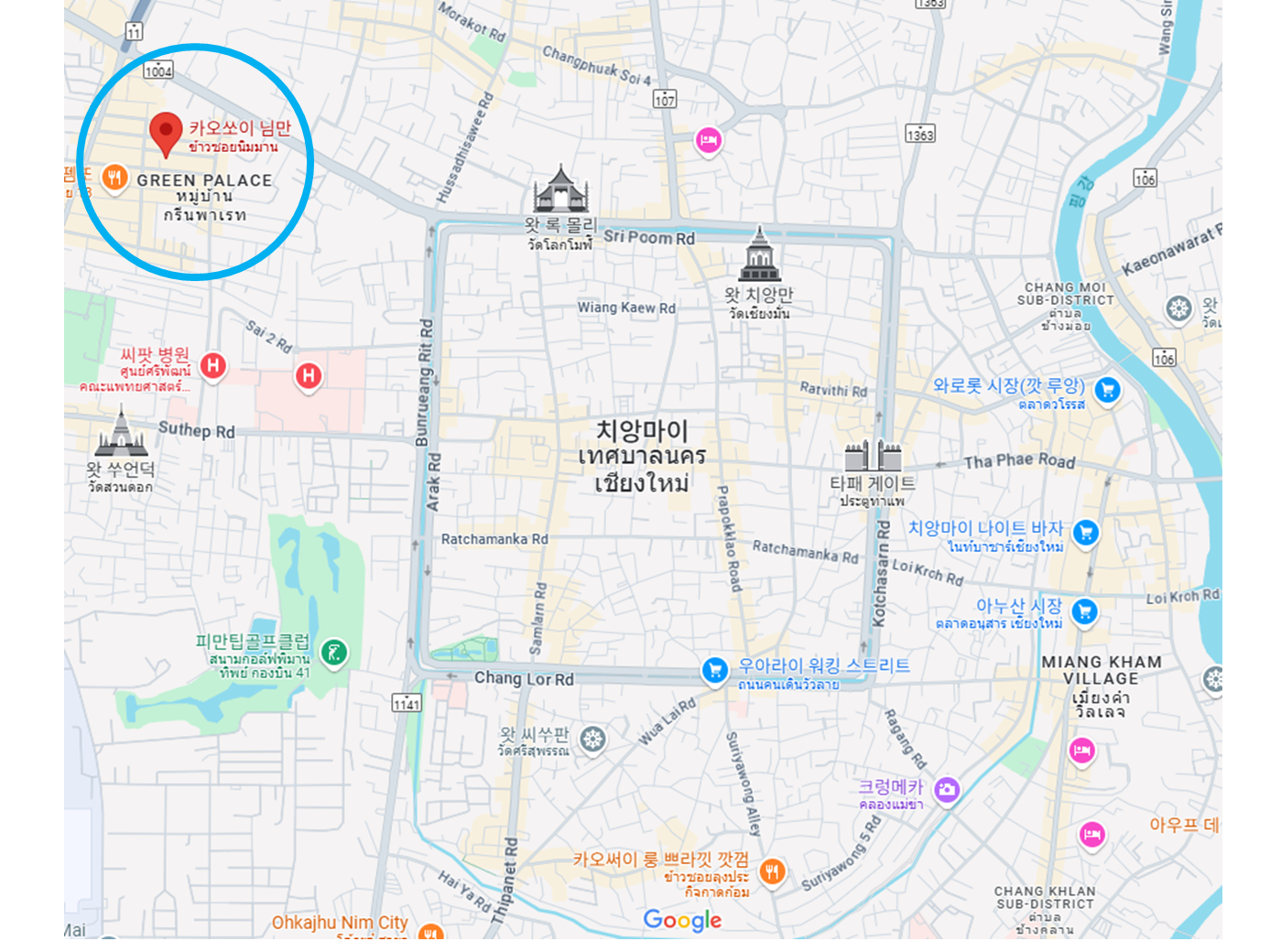 ● 치앙마이 그랩 배달 맛집 카오쏘이 님만 google map url : https://maps.app.goo.gl/7h7sM2zfXgbWkRHLA