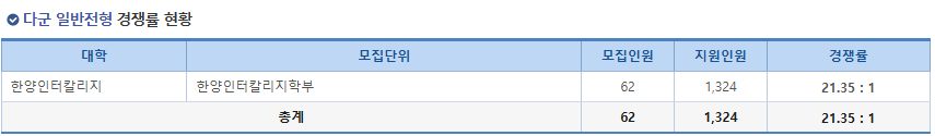 2. 한양대 정시 경쟁률 가군 일반전형 경쟁률 현황