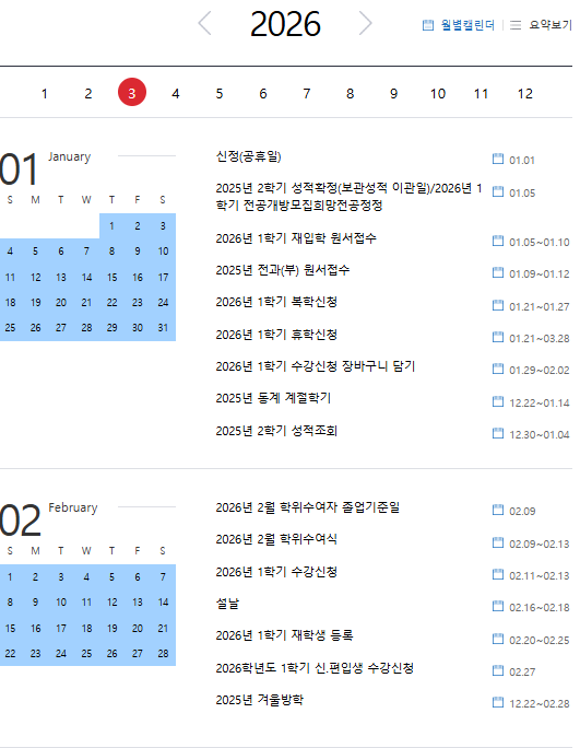 마지막으로 내년도의 1,2월 일정인데요, 중앙대학교 졸업식 일정을 알아볼 수 있기 때문입니다.