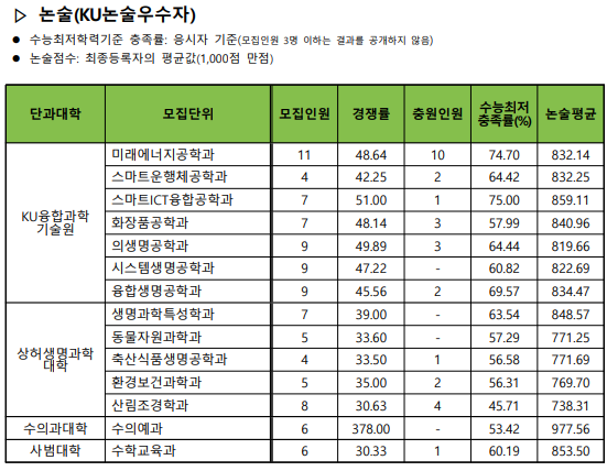 3. 2024 건국대 수시 입결 논술전형 (KU 논술 우수자 전형)