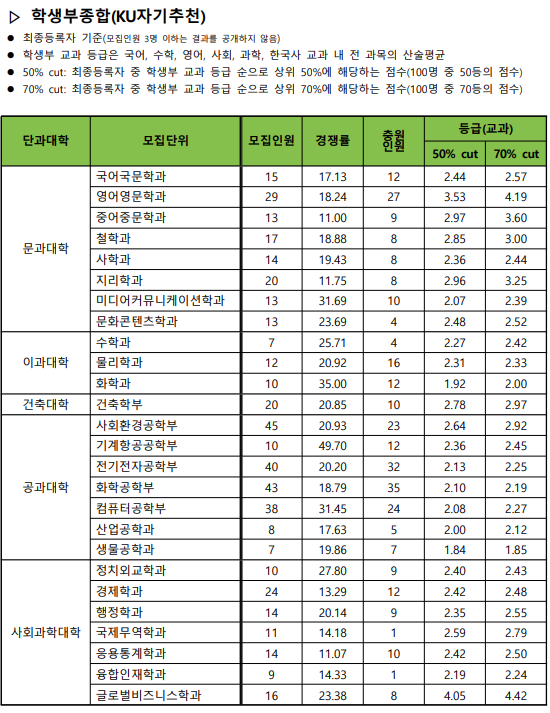 2. 2024 건국대 수시 입결 학생부종합 (KU 자기추천 전형)