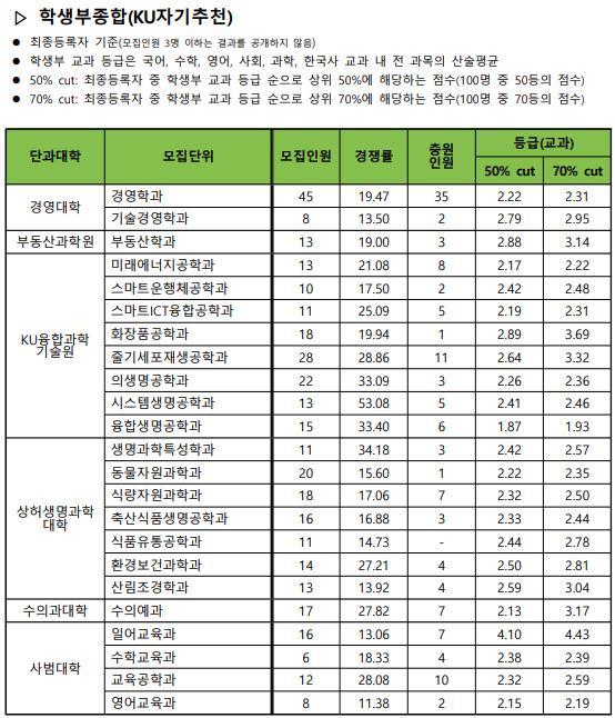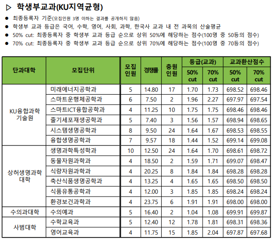 1. 건국대학교 수시 입결 - 학생부교과 KU 지역균형