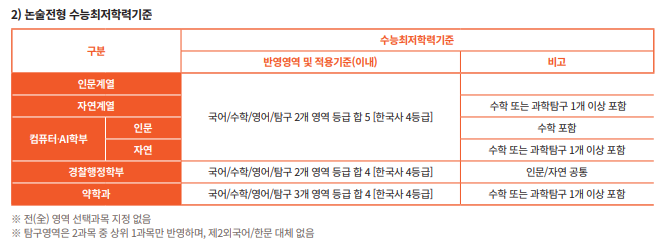 해당 전형도 학생부종합전형과 마찬가지로 수능최저학력기준이 없습니다.
