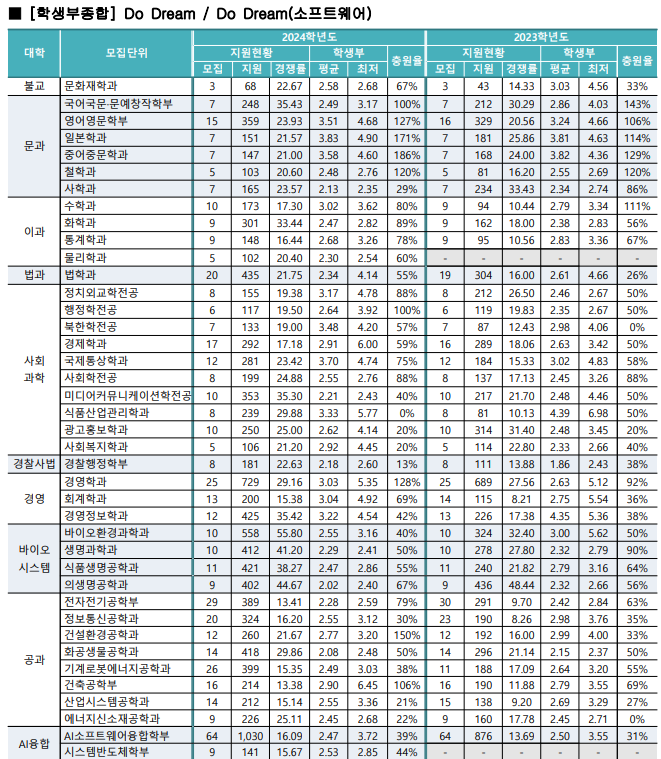 1. 2024학년도 동국대학교 수시 입결 - 학생부종합 Do dream