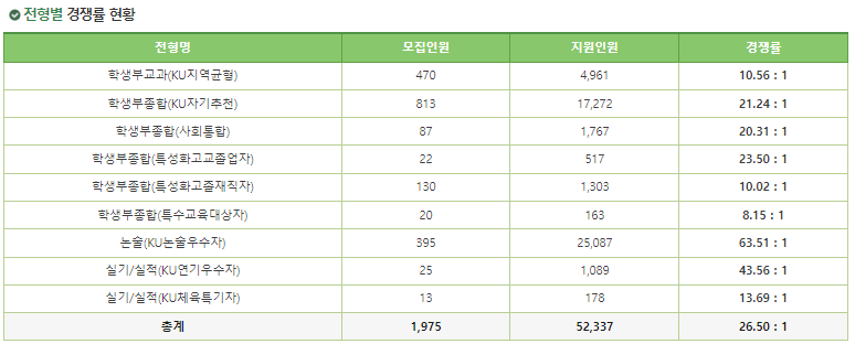 1. 건국대 수시 전형별 경쟁률 현황