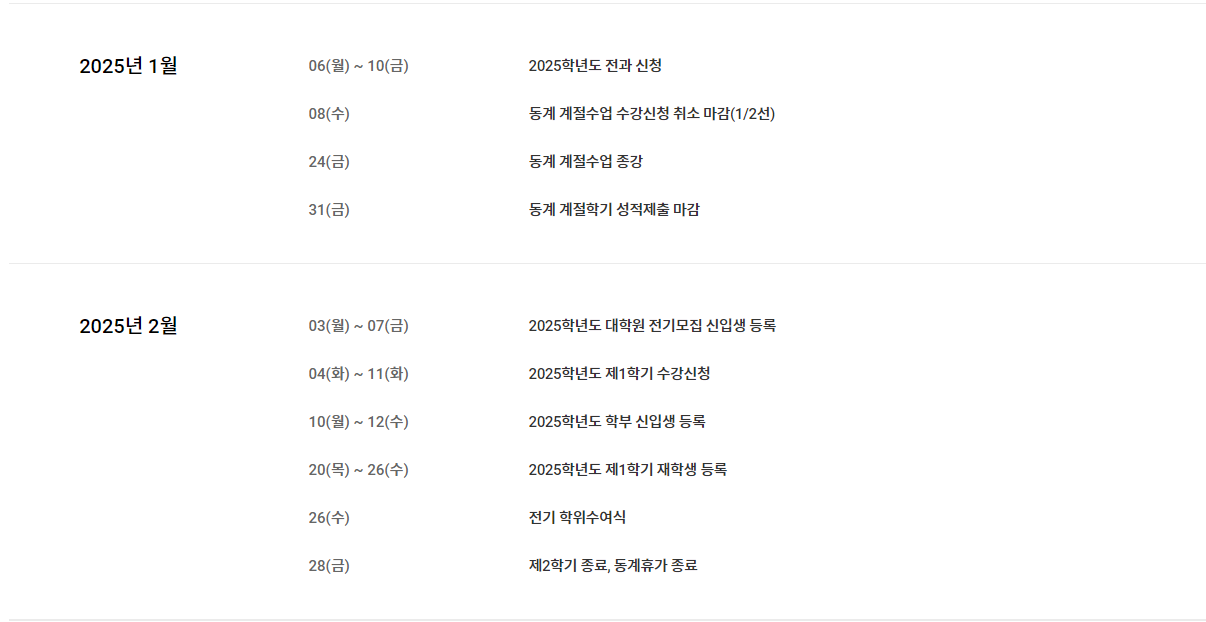 그럼 지금부터, 얼마 남지 않은 2024학년도의 서울대 학사일정과 2025학년도 1,2월 학사일정을 살펴보겠습니다.