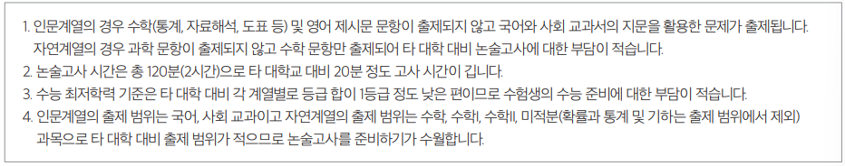 2. 논술고사 고사장 입실 가능시간을 초과하여 지각하거나 논술고사 결시할 경우 불합격 처리 될 수 있습니다.