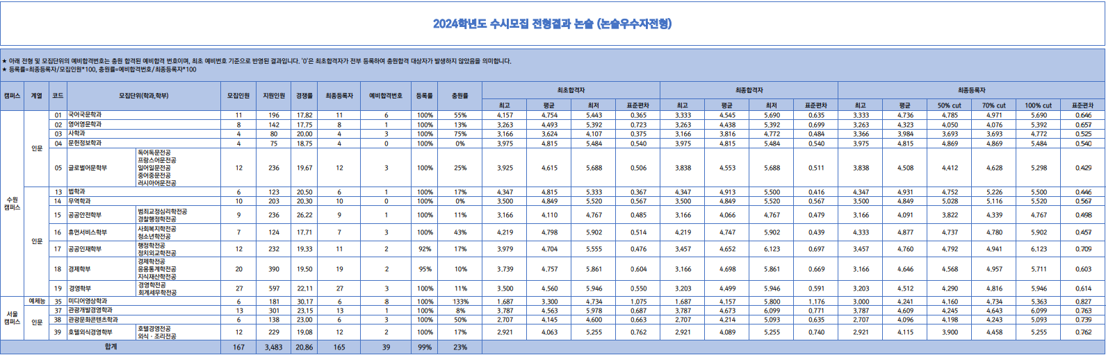 - 지원자 전체 수원캠퍼스에서 논술고사 실시
