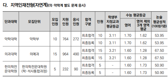 ▶부산대 논술 (지역인재전형 자연계) 학생부 평균등급, 수능 평균등급, 논술 성적