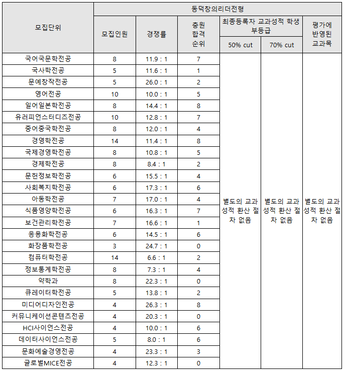 1. 2024학년도 동덕여대 수시 입시 결과 - 학생부 종합 동덕창의리더전형